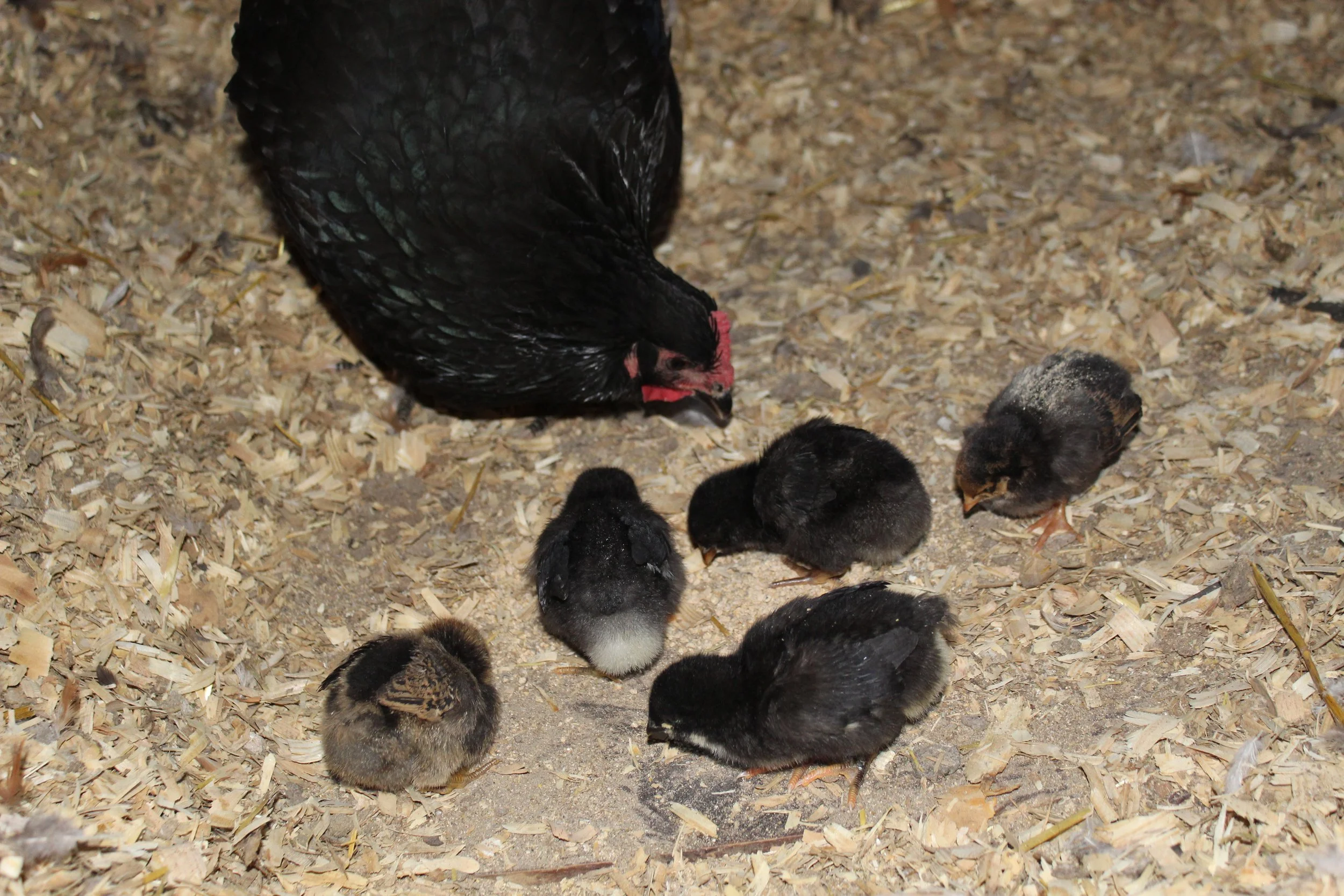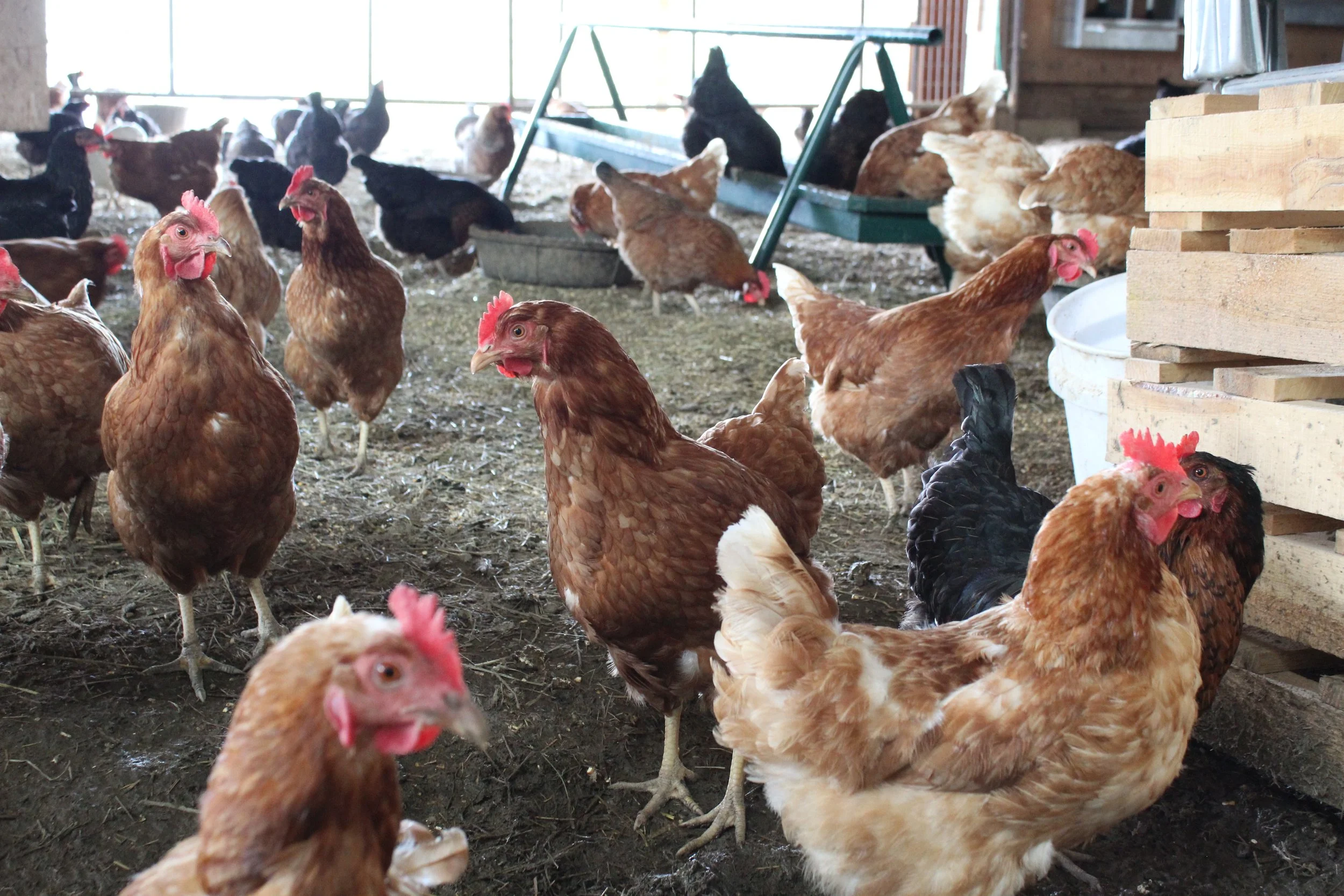 Finally, the juveniles move to the barn. They have a lot more space, but still remain in confinement to protect them from the older hens. The older hens would peck at the juveniles and injure them. So, we keep them confined with more pine shavings, bigger feeders, bigger waterers and eventually we add in some roosts for them to sleep on.